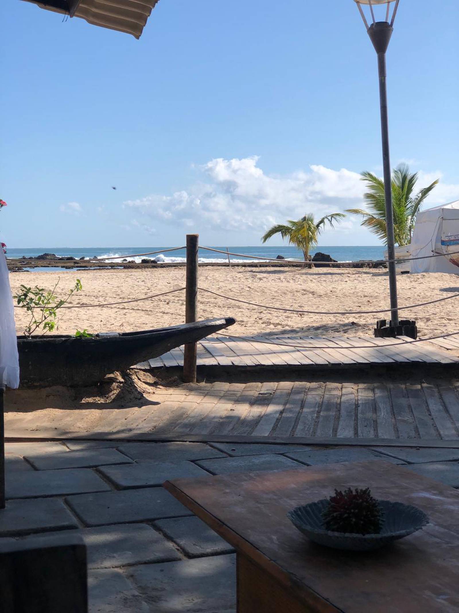 Veja as fotos da pousada pé na areia, das varandas com rede, do café da manhã frente mar e da Segunda Praia em clima de feriado prolongado.